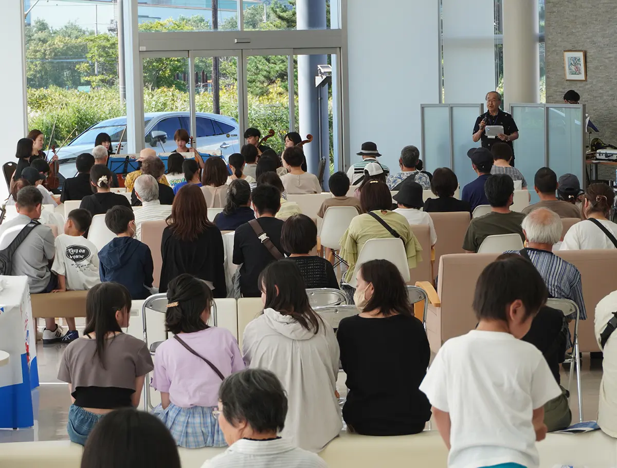 トヨタコミュニティコンサート(TCC)は「音楽を通じた地域貢献」を目的に、1981年から(公社)日本アマチュアオーケストラ連盟と全国各地のトヨタ販売店が連携して、地元で活躍するアマチュアオーケストラを応援し開催するクラシックコンサートです。「自分たちが住む町に恩返しをしたい」「子どもたちにも音楽を楽しんでもらいたい」そんな想いをこめてネッツトヨタ苫小牧でもショールーム内で開催をしています。今年で4年連続の実施となるこの取り組みはクラシックを気軽に、間近で鑑賞できるイベントとして、親子からシニアまで幅広い世代の方々に好評をいただいています。