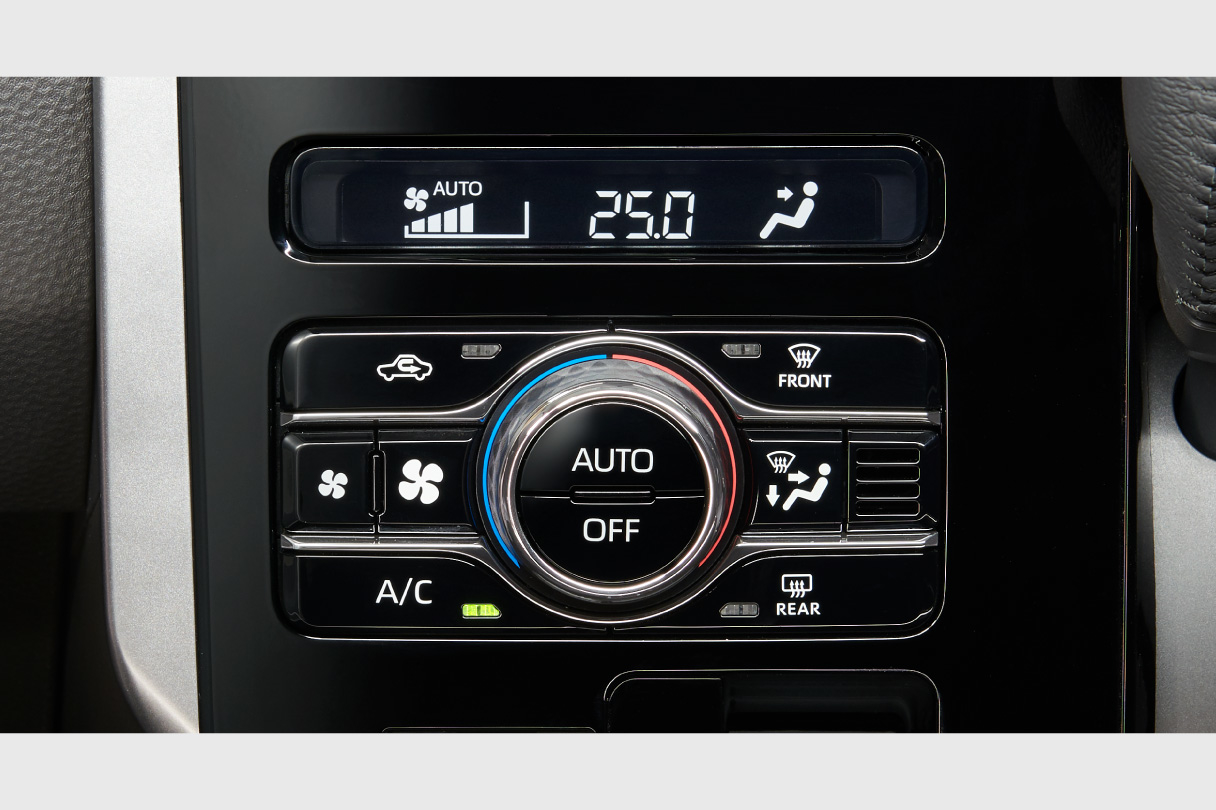 操作しやすいプッシュ式パネルに、見やすい液晶表示を採用。駐車時などイグニッションOFF状態で外気モードになるので、車内のこもり臭を防ぎます。
